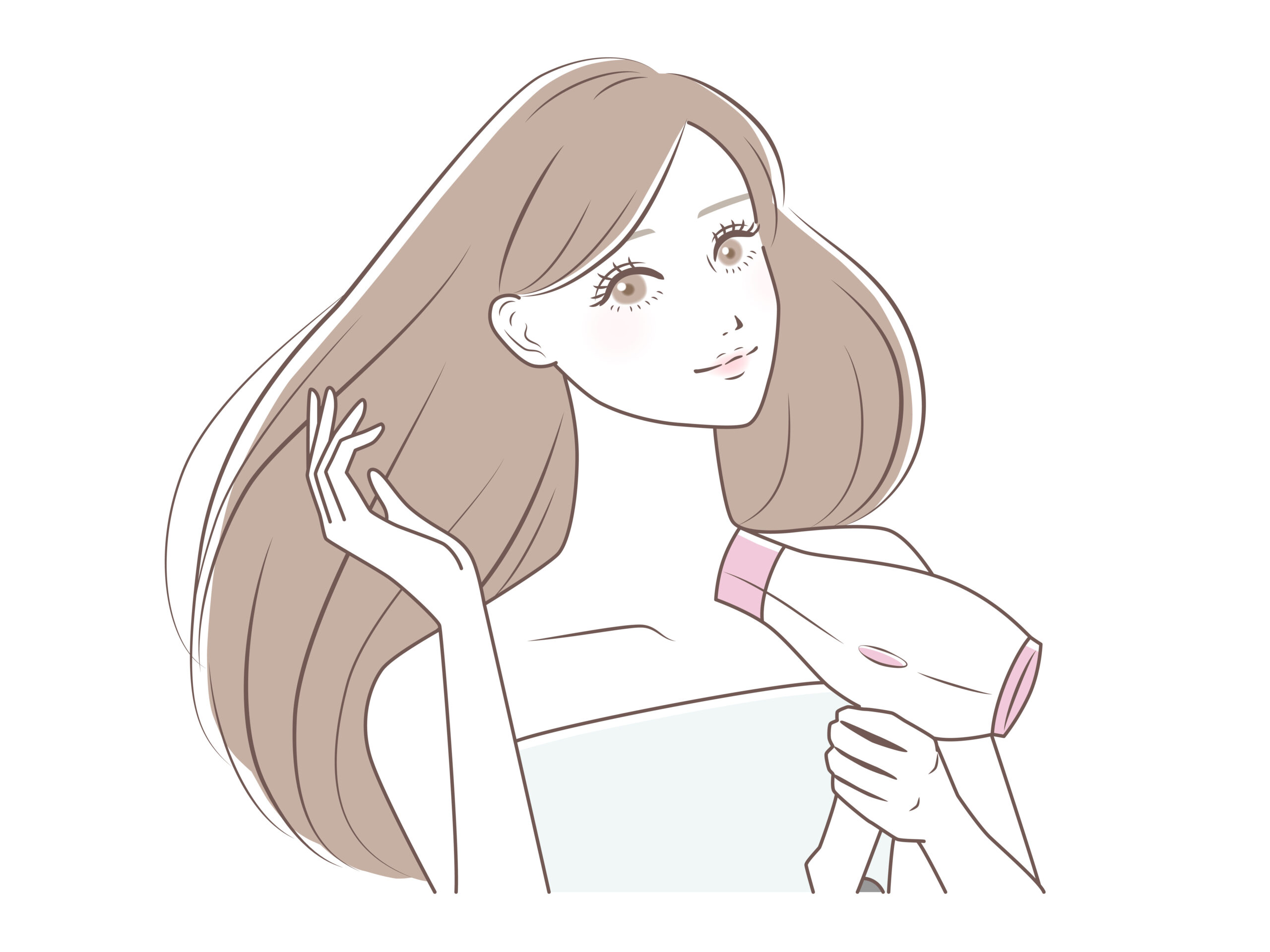 お風呂から上がったらまずはタオルドライをしてしっかり水気を取ることで、ドライヤーの時間短縮&髪へのダメージ軽減につながります